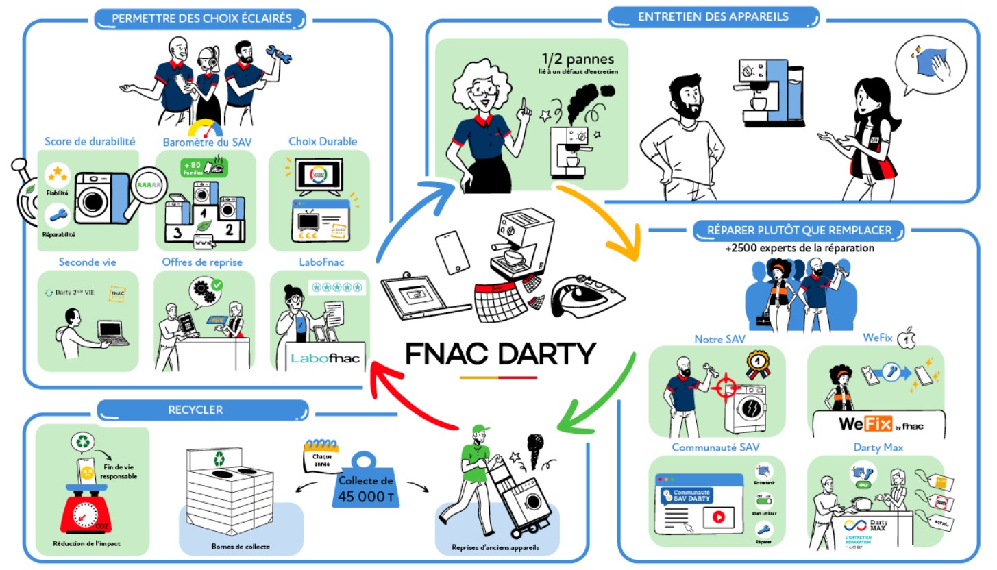 Acteur engagé, le groupe met déjà en place des initiatives en faveur d’une consommation plus durable, que ce soit à travers son Baromètre SAV annuel, un score de durabilité des produits ou encore la proposition de produits Seconde Vie et la sélection de produits « Choix Durable » par les experts SAV, qui regroupe les produits les plus fiables, les plus réparables et les moins énergivores.